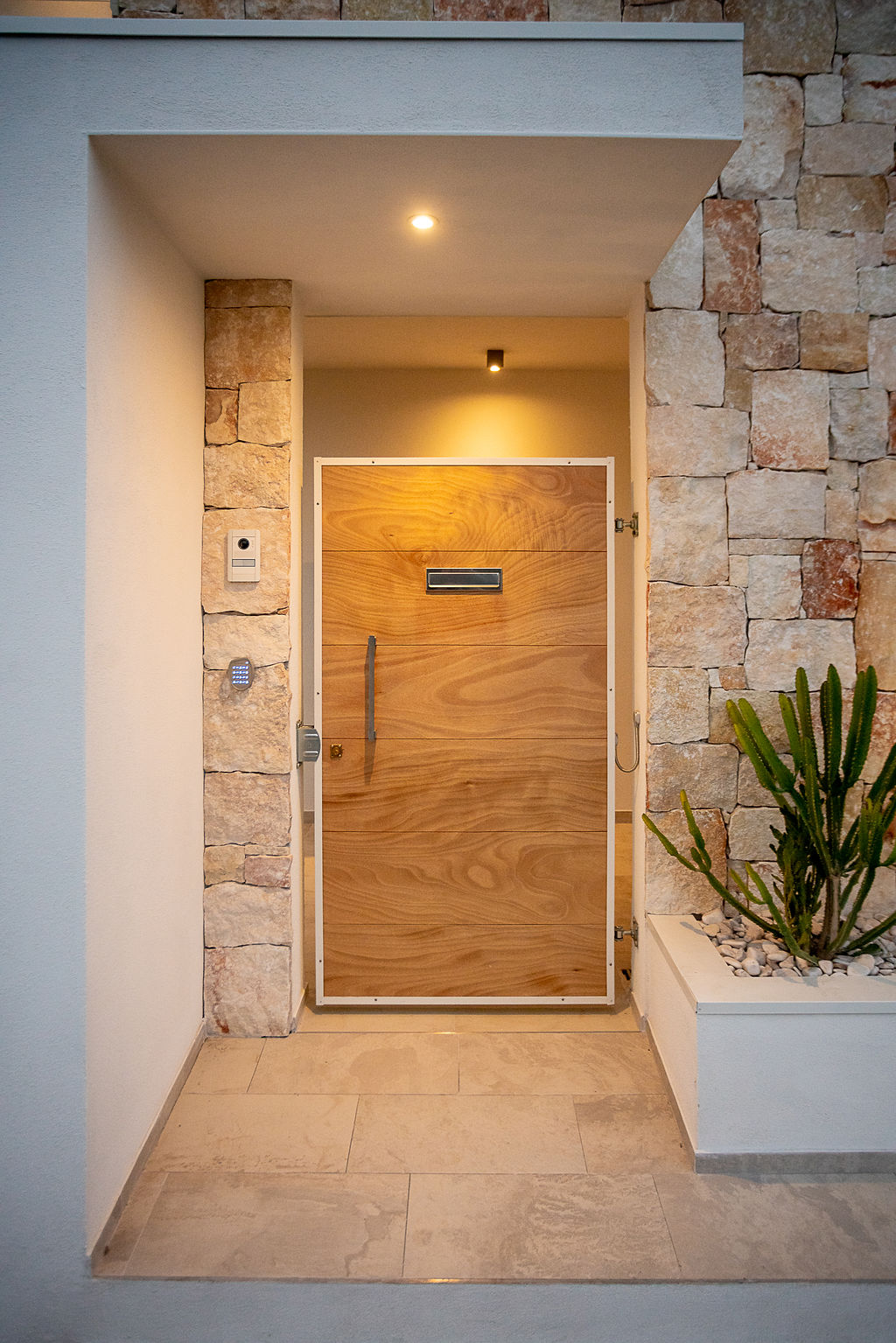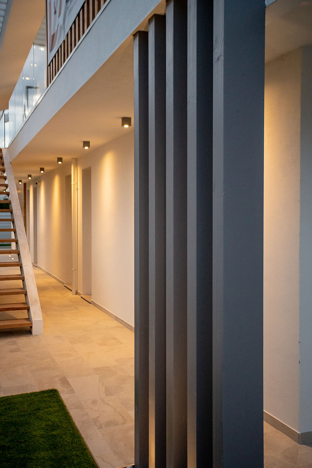 Lo spazio è stato arredato con stile e utilizzando esclusivamente materiali naturali come il legno, la pietra e il vetro, per creare un ambiente accogliente e rilassante.