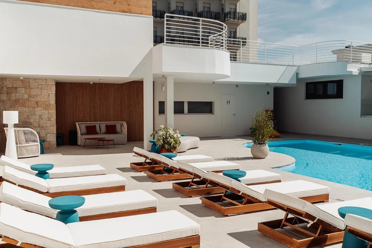 Rinfrescati nella nostra area esclusiva con piscina, bagnino e spazi accoglienti. (Al Residence Élite, stessa proprietà, a pochi passi dal residence)